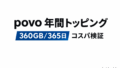 なお、povoの年間トッピング(360GB/365日)については、私の運用実績ベースで別記事にまとめました。povo年間トッピングのコスパ