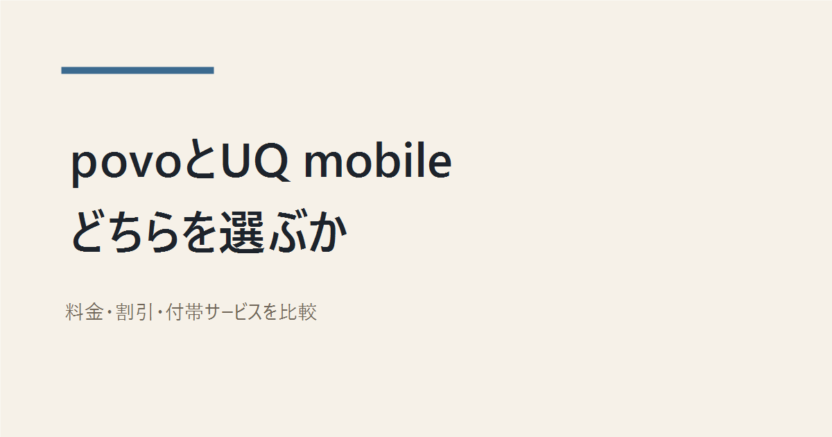 ※本記事内の料金・特典・条件は、2026年4月時点で UQ mobile / au / povo の公式サイトと公式FAQに掲載されている情報をもとに整理しています。割引条件や付帯サービス、キャンペーンは変わる可能性があるため、申し込み前には必ず最新の公式情報をご確認ください。